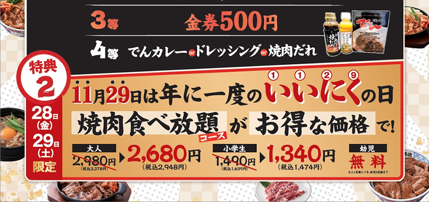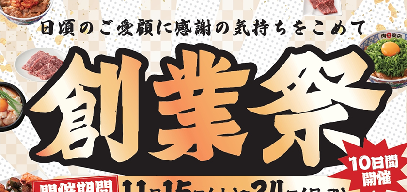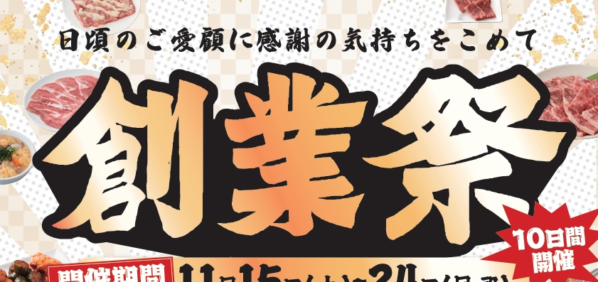 日頃のご愛顧に感謝を込めて、焼肉牛伝は11月15日~24日の間、創業祭を開催します!